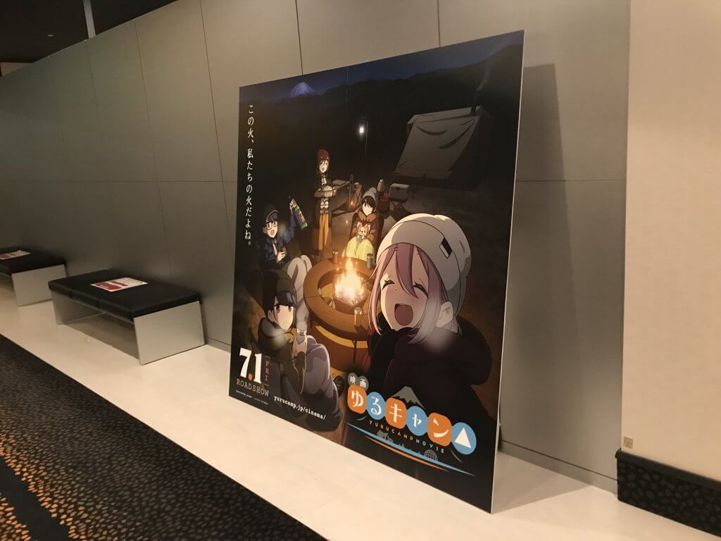 スクリーンを出た所にもメインビジュアルの大きなポスターがあり、劇場を出入りする人の足を止めていました。なでしこの笑顔はやっぱり良いですね。みんなで焚き火を囲んで、他愛もない話でかけがえのないひと時を過ごす・・・、この上なくたまりません!